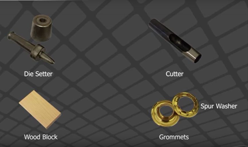 Grommets are available along with corresponding washers. Dies and setter are available in various sizes as well.