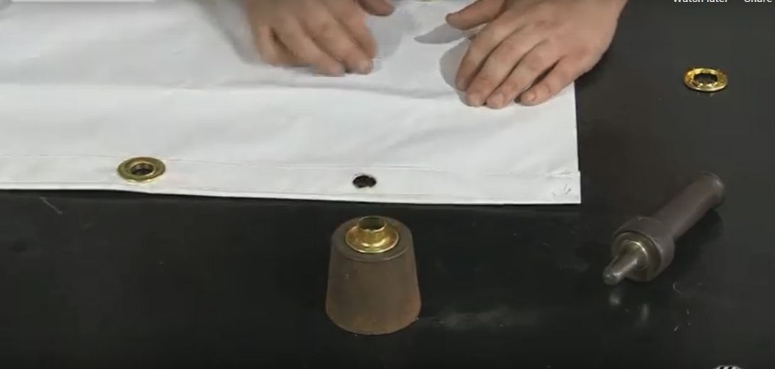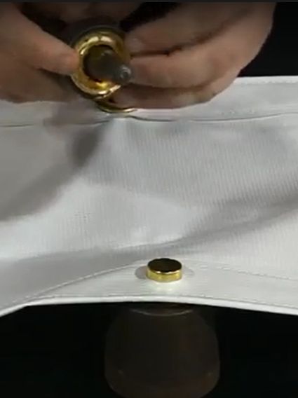 Grommets/eyelets are secured with a washer on the back. The washer creates a neat and more finished edge and reinforces the hole. To set the grommets/eyelets, a special punch and die which are sized to correspond to the grommet/eyelet size is required.