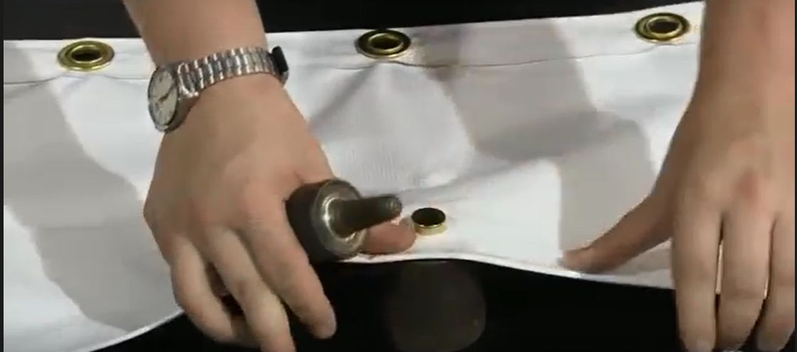 Grommets/eyelets for use on canvas tarpaulin are metal rings that are inserted into a hole made through a selected spot on the canvas tarpaulin. These grommets/eyelets reinforces the hole and the grommets/eyelets are used as a tool to secure the canvas tarpaulin to permanent fixtures so as to secure or keep the canvas tarpaulin in position during use. Grommet/eyelets prevents the ropes inserted through from tearing through the hole when securing the canvas tarpaulin in place, thereby providing structural integrity. The terms grommets and eyelets are commonly used interchangeably.